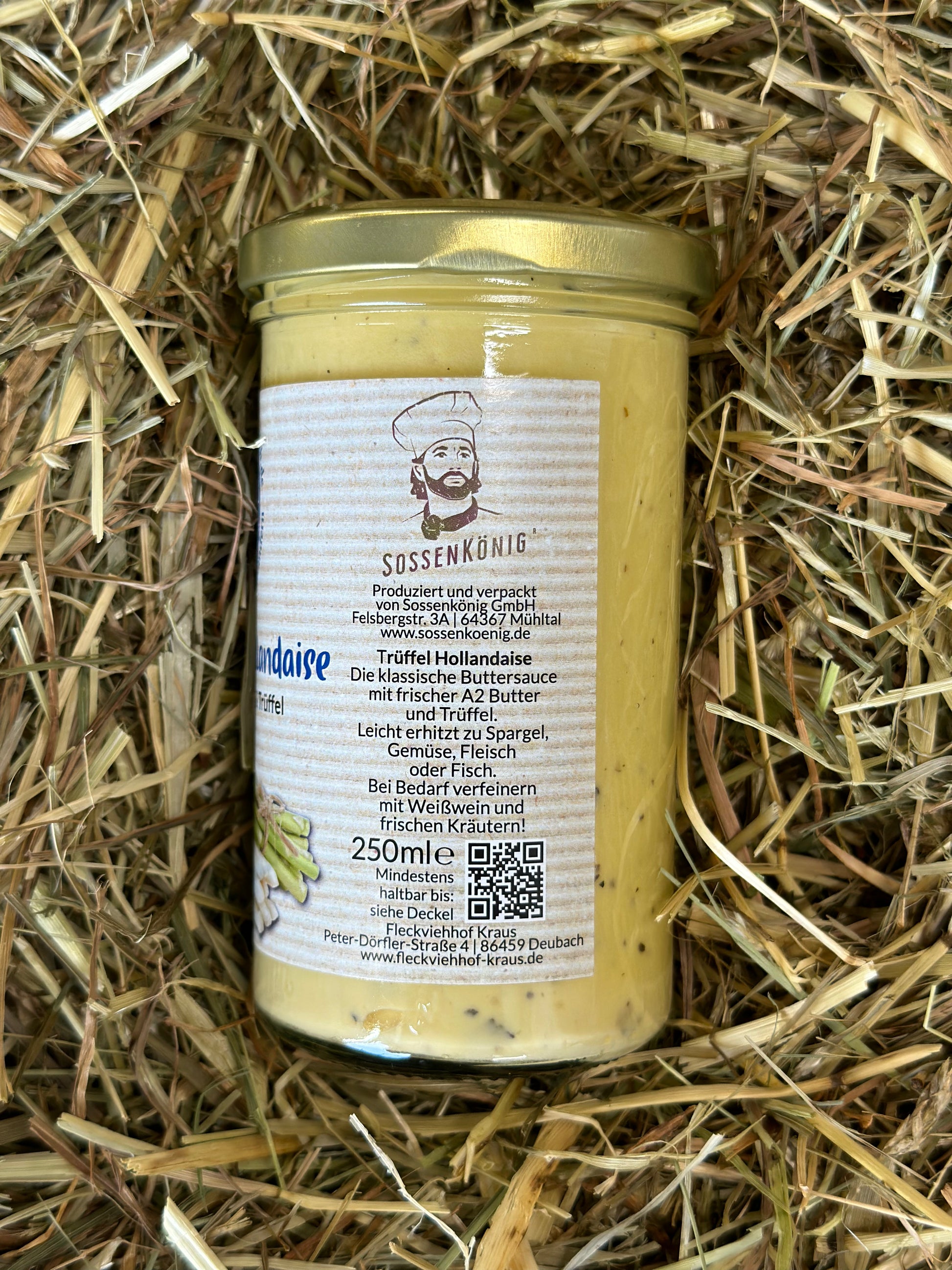 Unsere klassische, gebrauchsfertige Sauce Hollandaise wird mit hochwertiger A2-Butter und feinem Trüffel veredelt und bietet ein vollmundiges, aromatisches Geschmackserlebnis.